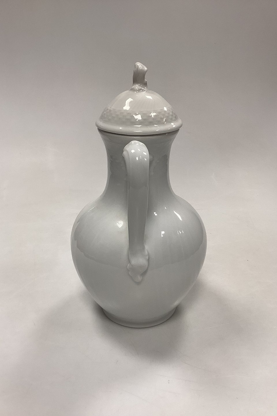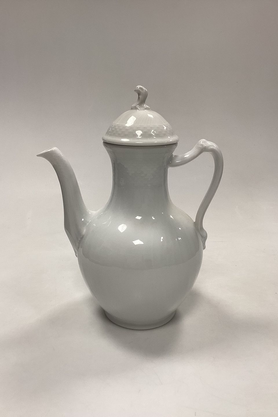 Royal Copenhagen Josephine, Hvid Svejfet Kaffekande No. 128 med låg No. 127. 1. Sortering.