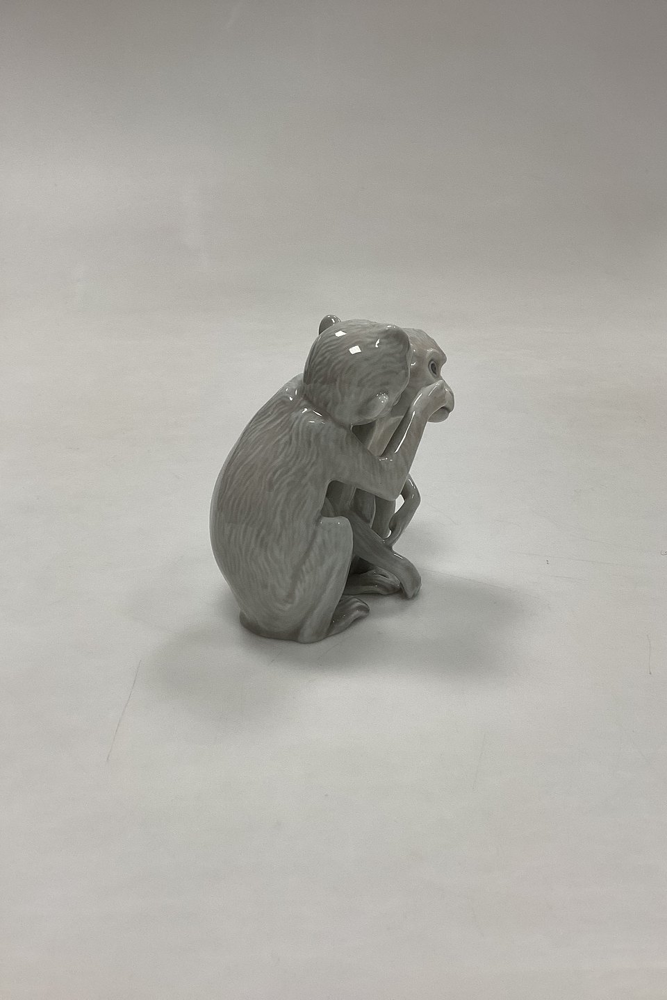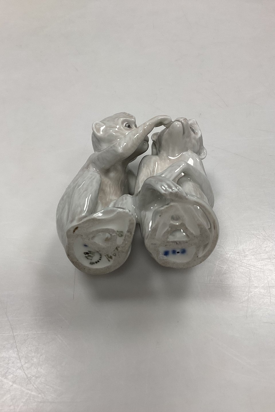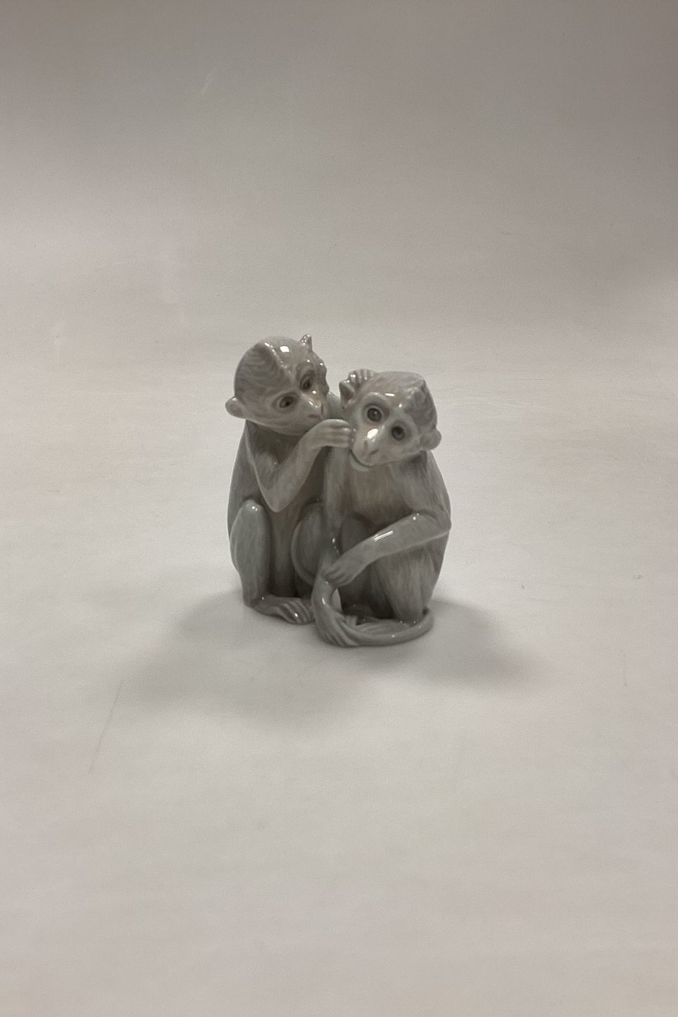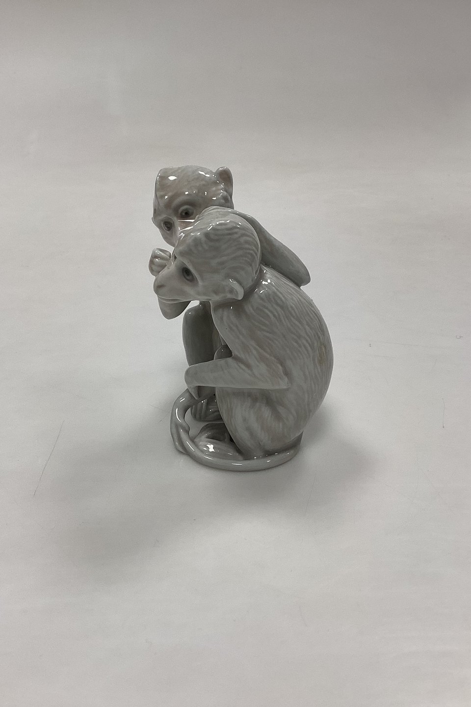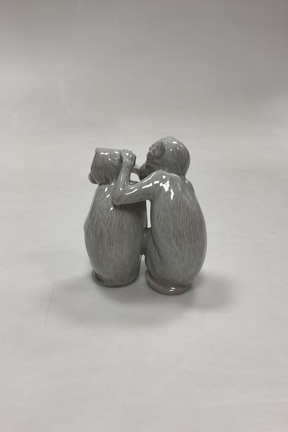 Bing og Grøndahl Figur Abepar No. 1667 eller 1524. Designet af Ingeborg Plockross Irminger. Figuren er nummeret med den højre abes figurnummer. Farve: gråhvid.