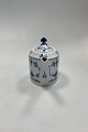 Royal Copenhagen Musselmalet Riflet Oval Tekande No. 253. Måler 9,5 cm / 3,74 in. i højden uden låg. Måler 12,5 cm x 9 cm / 4,92 in. x 3,54 in. uden hank og tud.