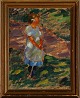 "Solskinsdag med pige i have" Flot ekspressivt maleri.