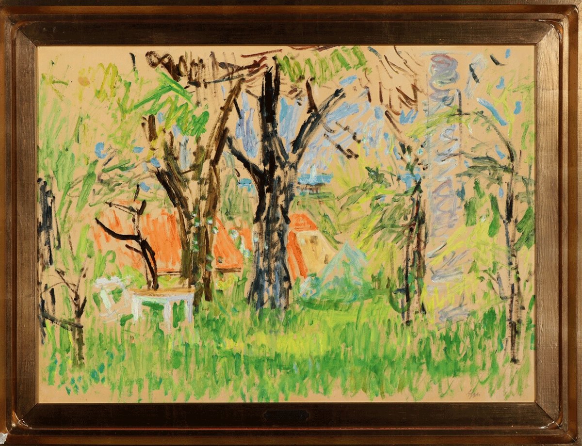 "Haveparti fra kunstnerens bolig ved Helsingør" Olie på lærred.