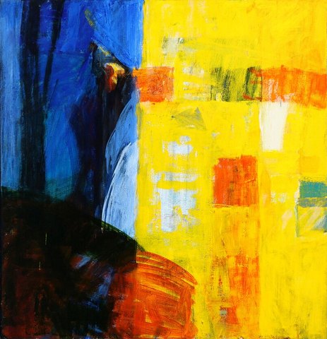 "Komposition" Olie maleri på lærred, i kraftig sort svæveramme.