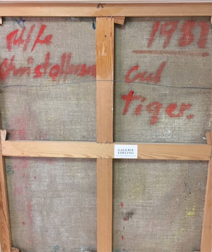 "Tiger" Olie på lærred, i sølv svæveramme fra Freese og sønner.