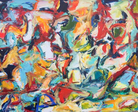 "Komposition" Kolosalt maleri i sølv svæveramme fra Bogø Design.
