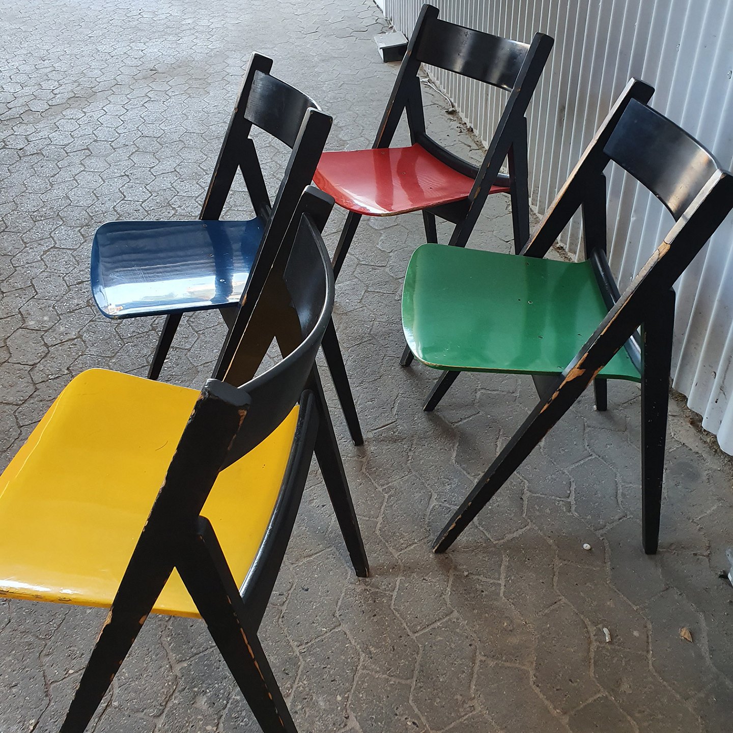 Hans J. Wegner very rear sawback chairs only produced to the cantine in the newspaper Politikken.