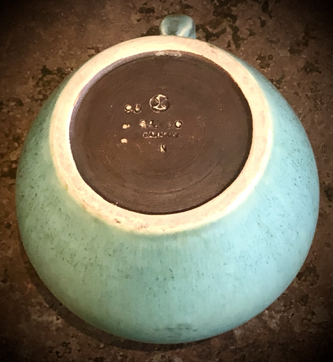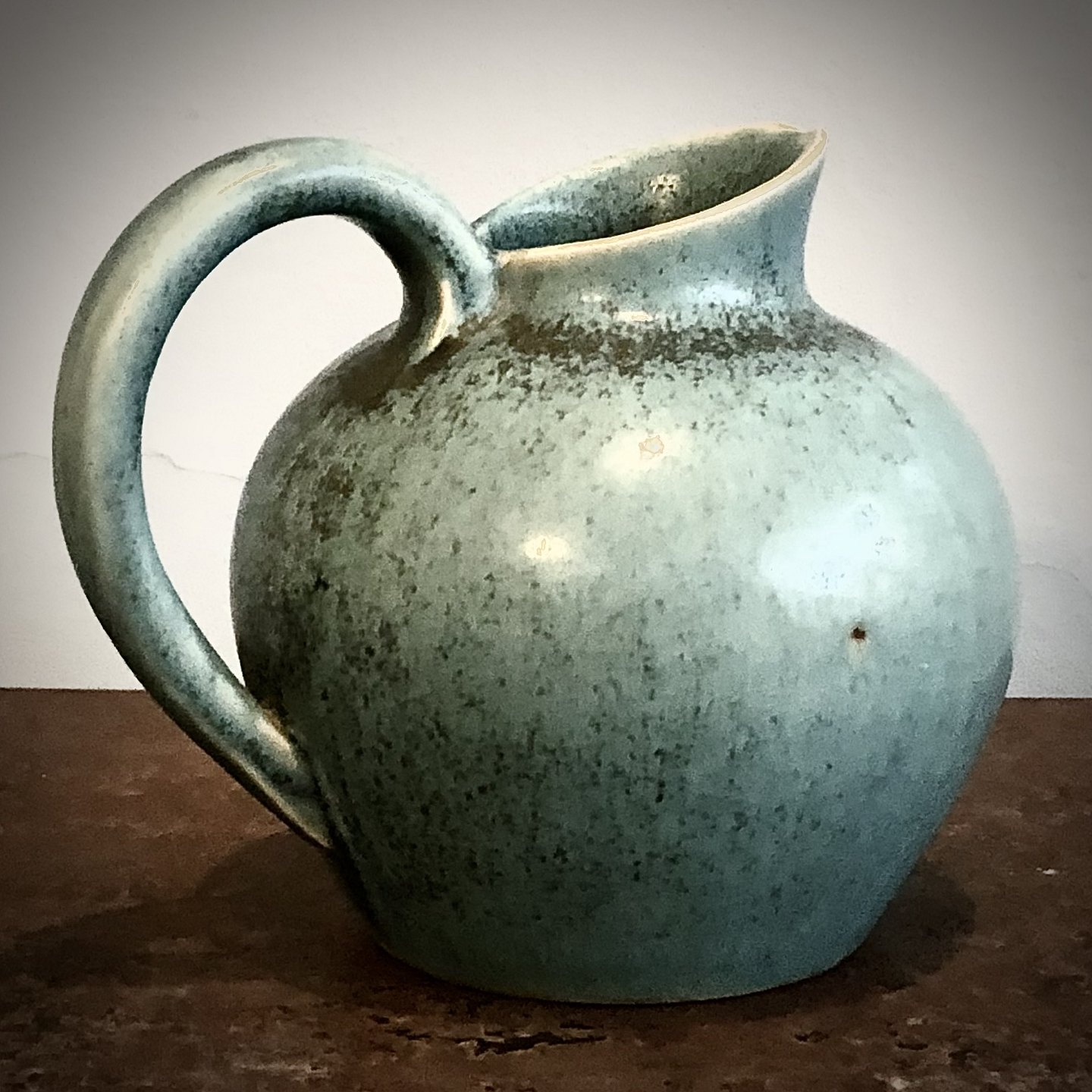Saxbo Jug with heh36 (Caribbbean) icing. Model 90. Stamped with Ying Yang mark from the period 1938-1951. H. 16 cm. X 17 x14,4 cm. #28