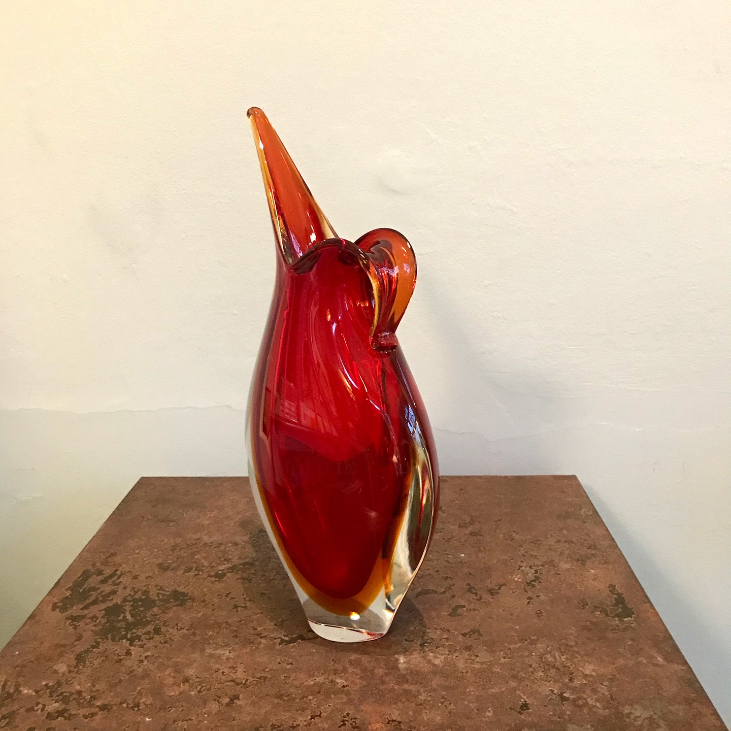 Itemnumber: 492384Murano Sommerso vase of clear, red and yellow glass. Made in Italy on Morano and made in the style of Flavio Polis summer glassware for Seguso Vetri d'Arte.H. 31 cm. B. 17 cm. D. 7 cm.