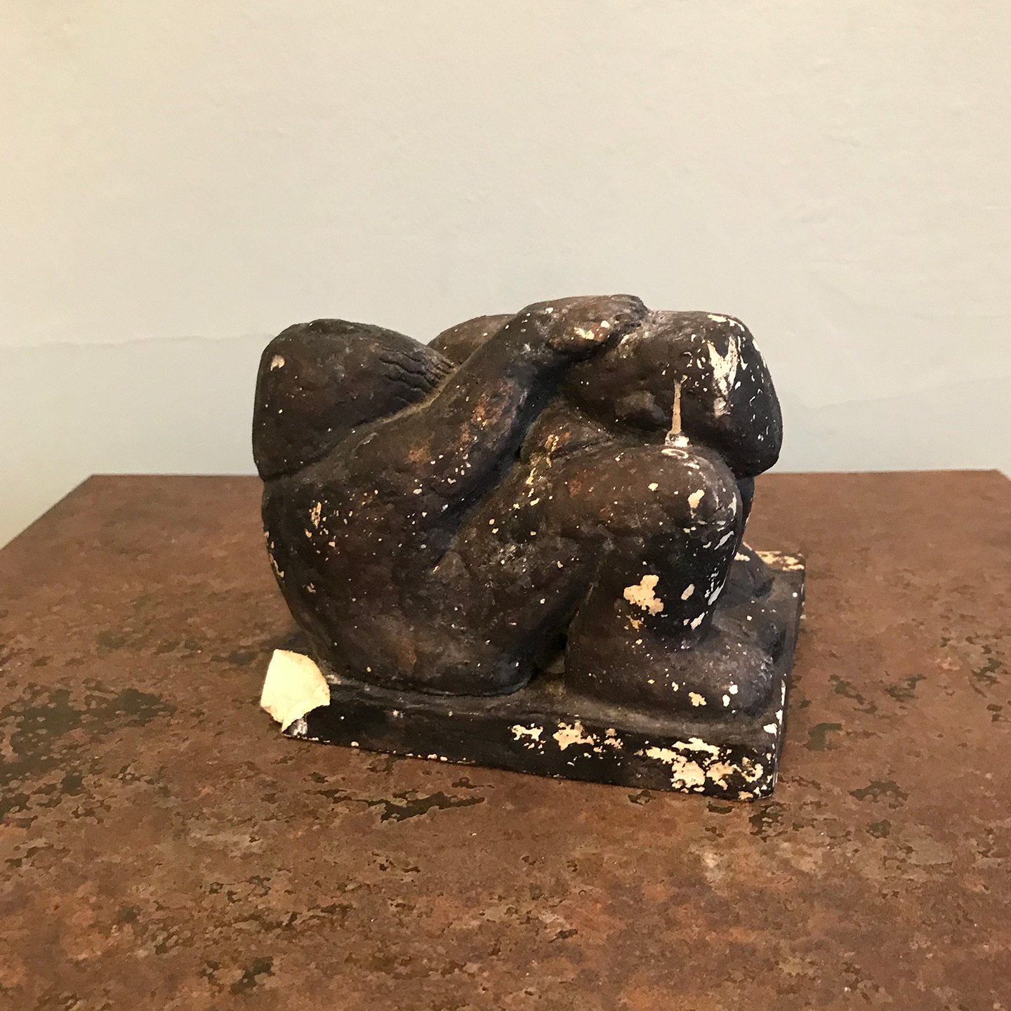Figur i sort dekoreret gips udført og signeret af den svenske kunstner Stefan Morlind i 1938, forestillende 2 personer tæt sammenslynget.