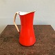 Købenstyle Red Jug with red enamel and white enamelled inside. Handle with wicker of white plastic.
