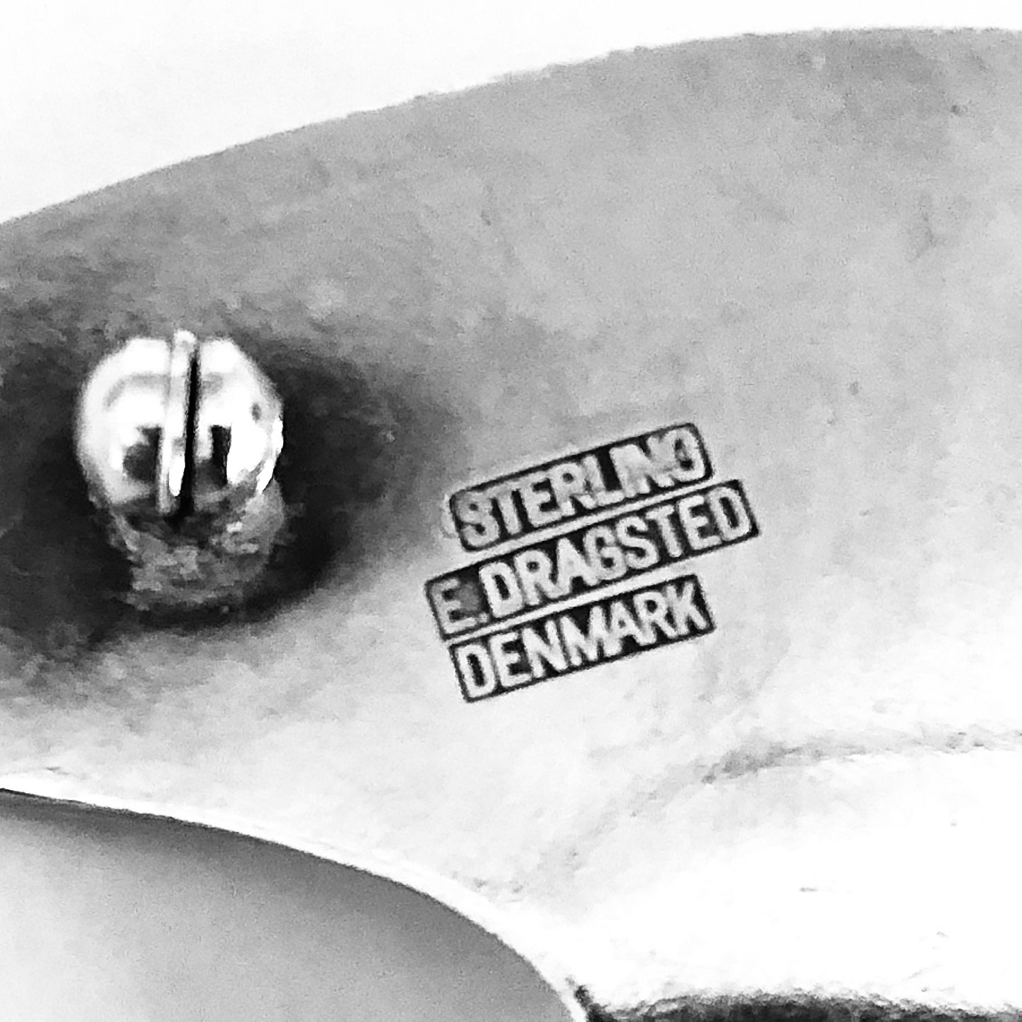 Sterling silver brooch made and handmade by E. Dragsted Copenhagen. Dimensions: 5.5 x 3.2 cm.