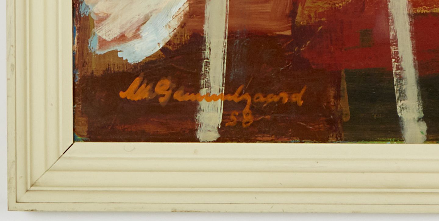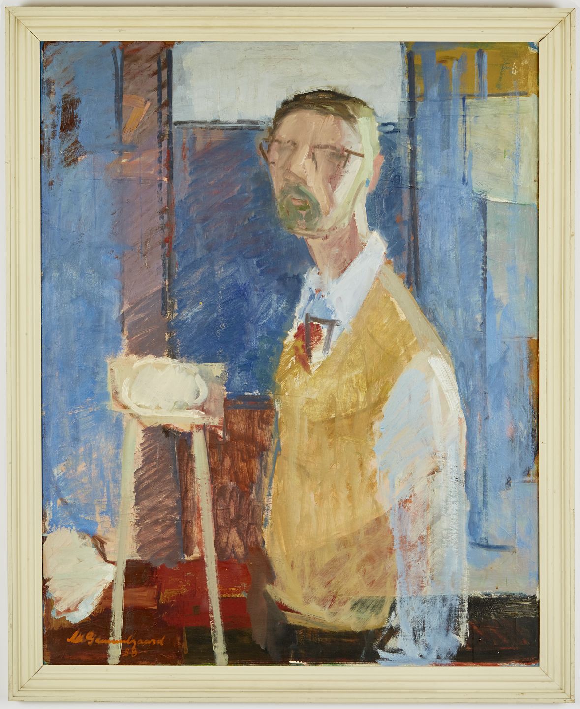 Selvportræt olie på lærred i orginal hvidmalet ramme.
