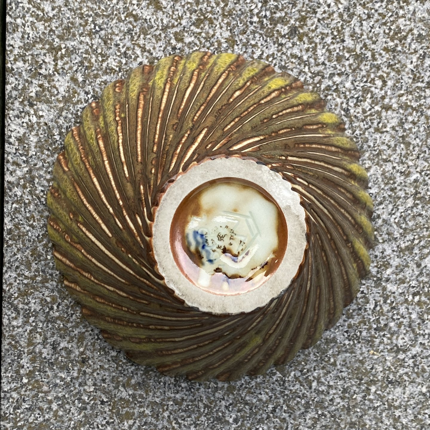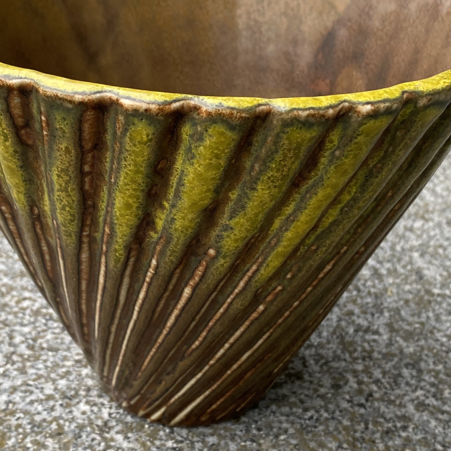 Stoneware vase with twisted, tapered corpus with Solfatara glaze. Fine condition.