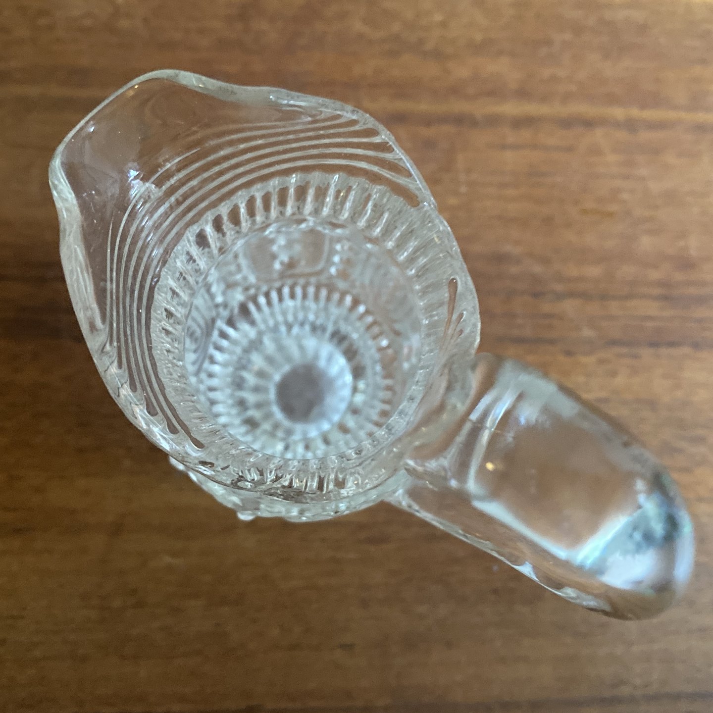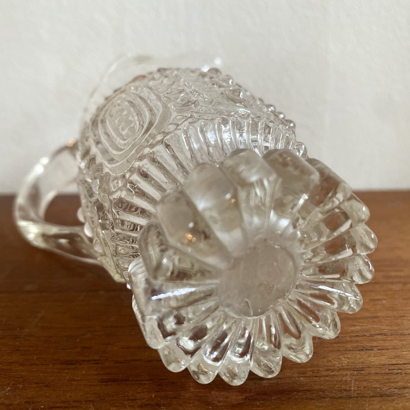 Flødekande af klart glas blæst i form.