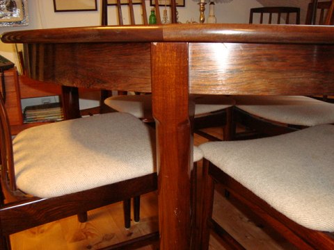 Flot Palisander spisebord med 2 tillægsplader designet af Arne Vodder, H. 73 cm, D. 120 cm