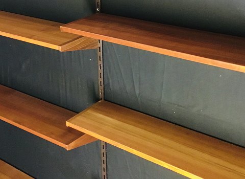 FM Furniture teak reol, design Kai Kristiansen i meget fin stand. 8 hylder på 24 cm a kr. 600 og 3 vægskinner a kr. 200