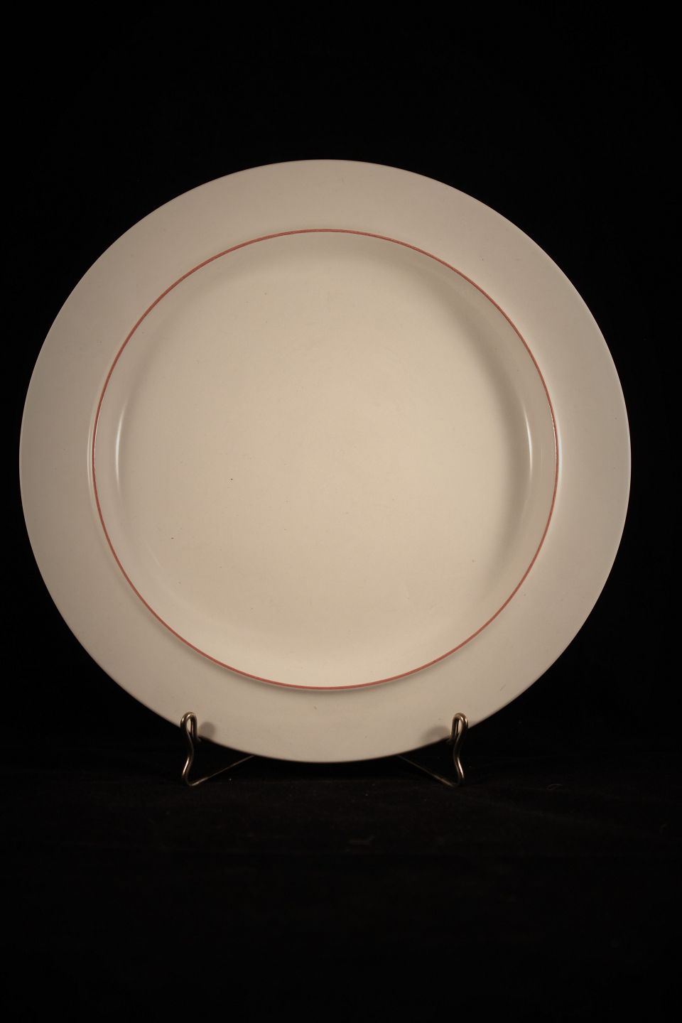 Middags tallerken ( 3069 ) i Rødkant / Rødtop , fajance fra Royal Copenhagen , designet af Grethe Meyer.