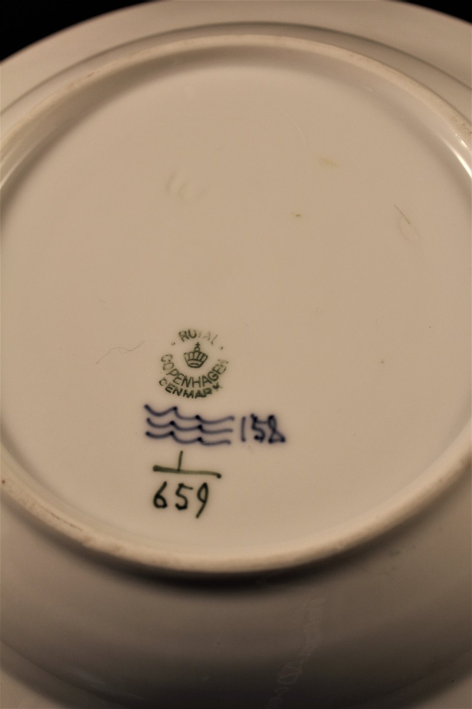 Blue fluted, half lace, deep plate from Royal Copenhagen. Decoration number: 1/559. Factory 1.quality. Dia.:24cm. (1 pc. Available.) Item number: 1/559