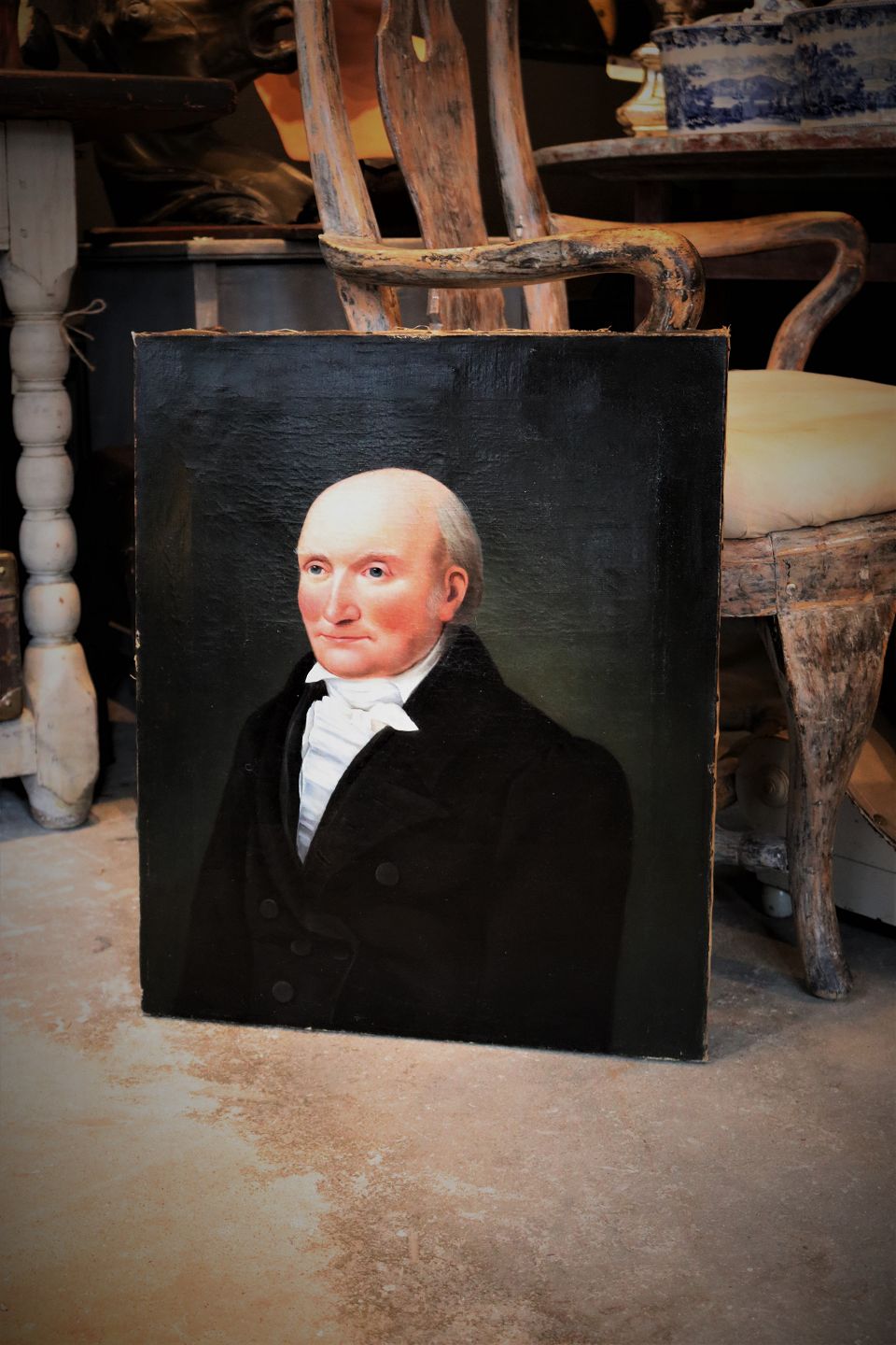 1800 tals olie Herre portræt maleri malet på lærred. H:55,5cm. B:46,5cm. Usigneret. Notits på bagsiden "Onkel Jørgen Bugge"