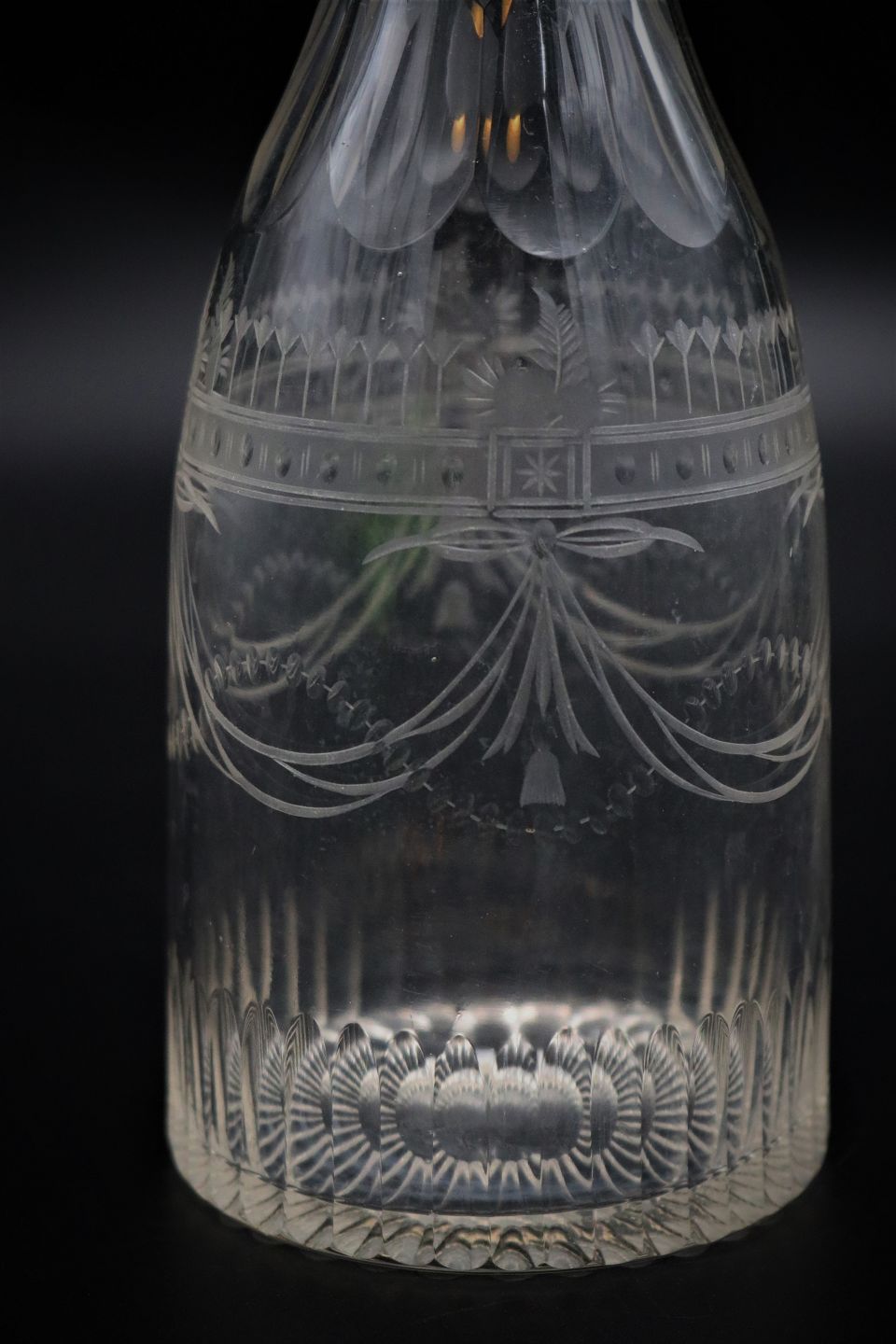 Fine old liquor glass carafe with fine grindings. H:26cm. Dia: 8,5 cm.