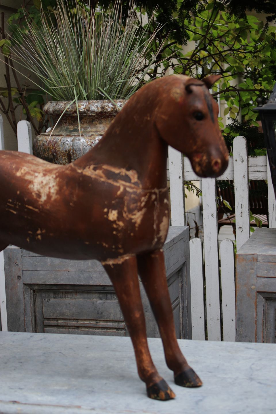 Swedish 19th century horse in carved wood with original fine brown color and with a super fine patina.