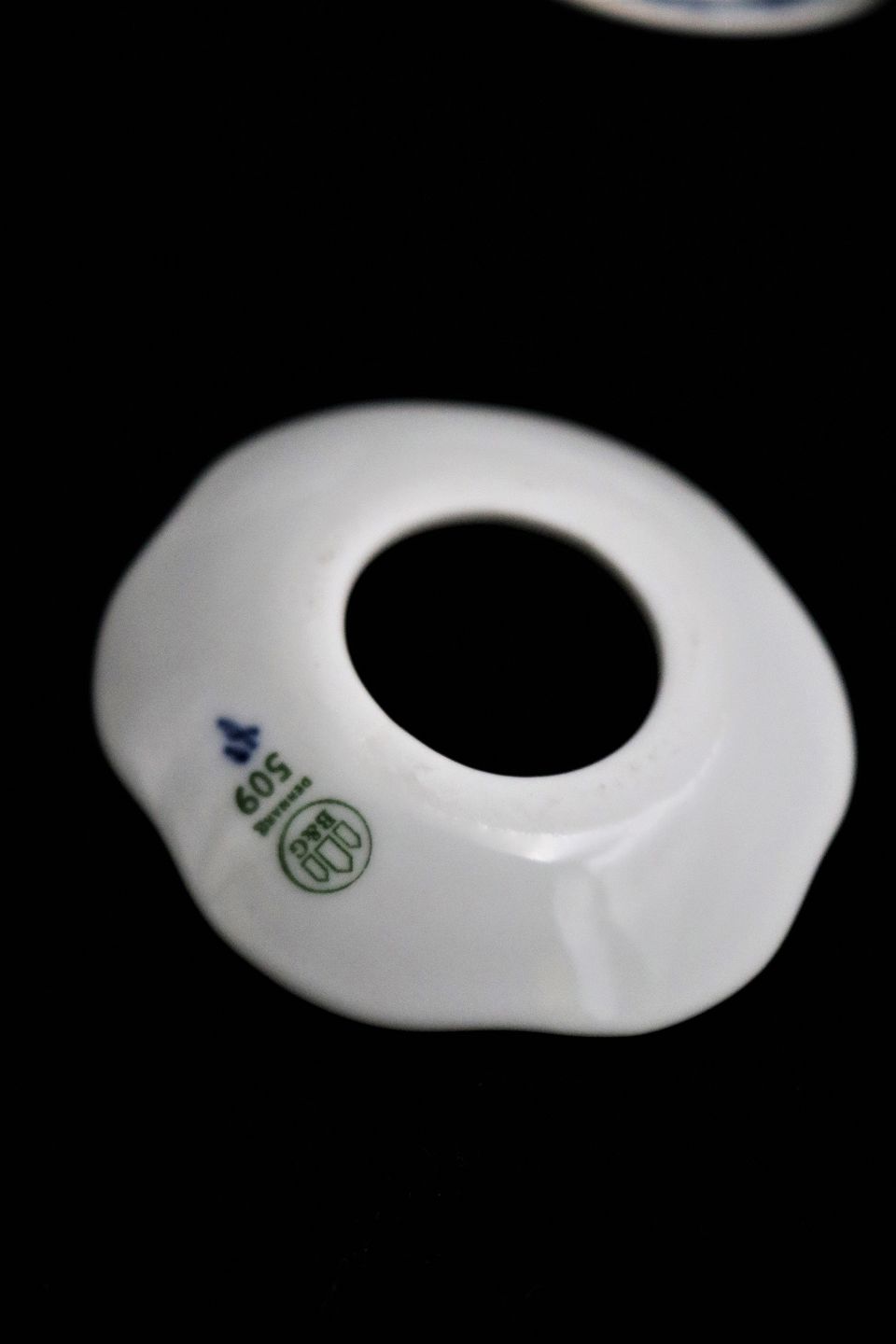 Bing & Grøndahl Blåmalet / Musselmalet stearinlys krave i porcelæn.