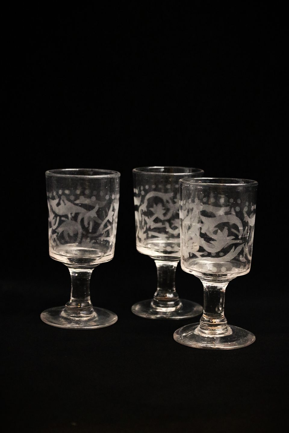Antique, 1800s mouth-blown French wine glass with floral cuts.