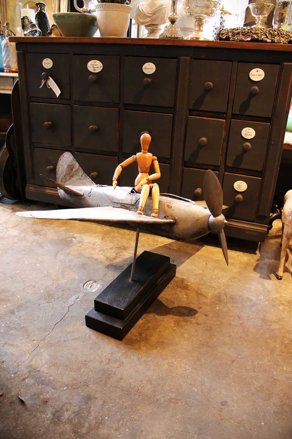 Decorative model plane from the 30s in wood and metal with a really nice patina.