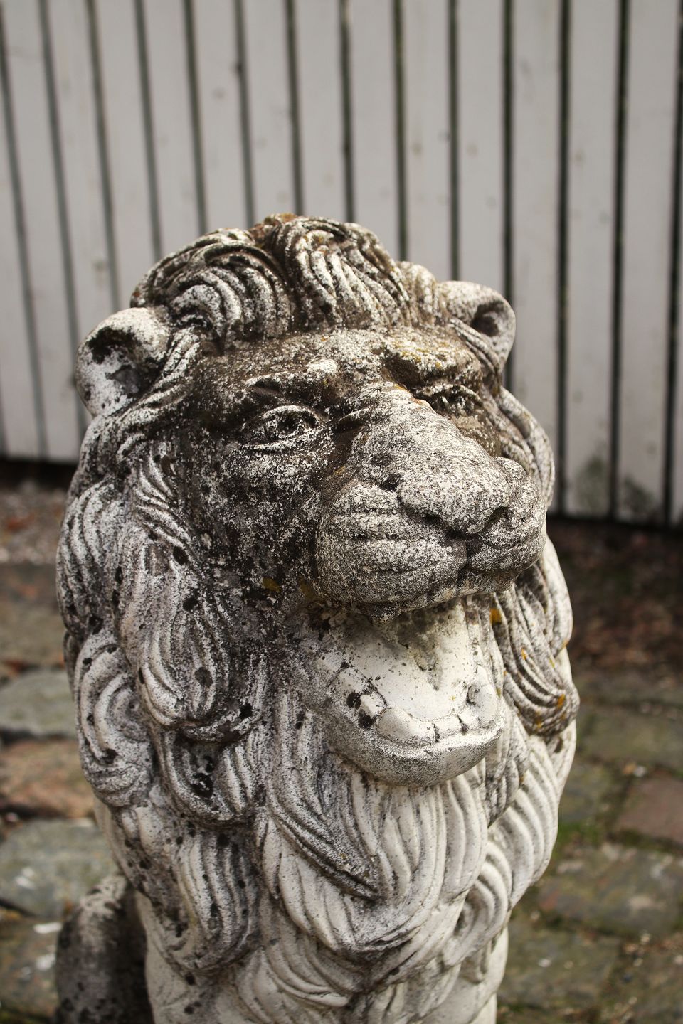 Stor , dekorativ gammel løve i sandsten med fin patina af vind & vejr.