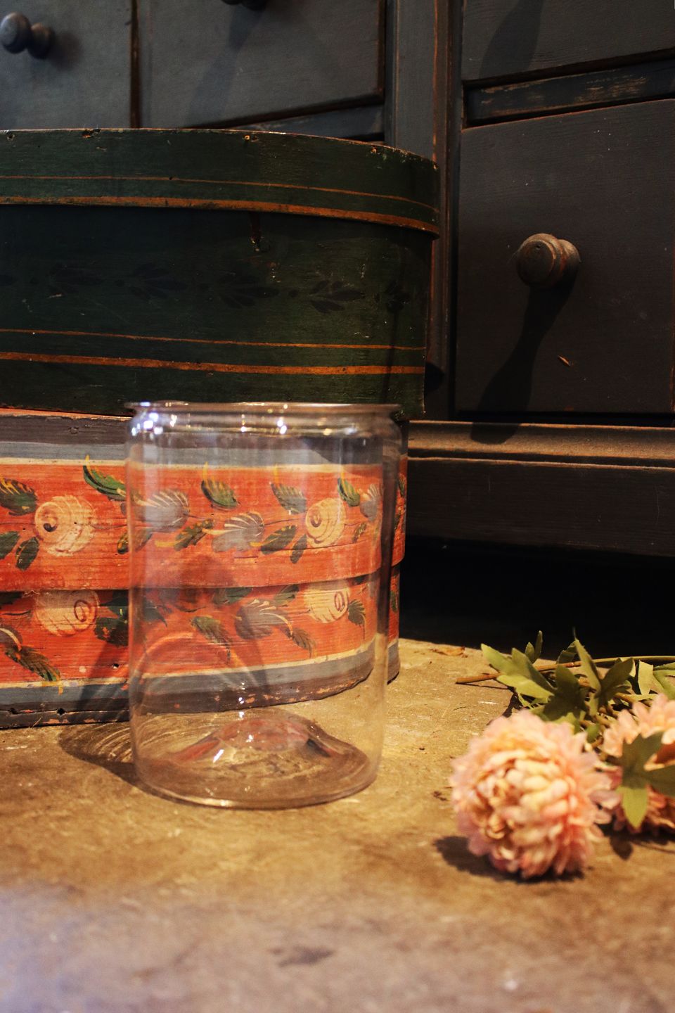 Large antique Swedish hand-blown jam jar with bent edge.