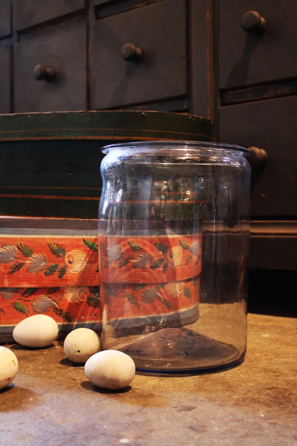 Stort antikt svensk mundblæst sylteglas med ombukket kant