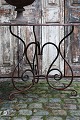 Old French round cafe iron table in polished wrought iron with a really nice patina and very nice base. H: 67cm. Dia.: 90cm.