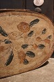Antique, Swedish 19th century oval wooden box with fine original painting with motifs of flowers and a small bird.