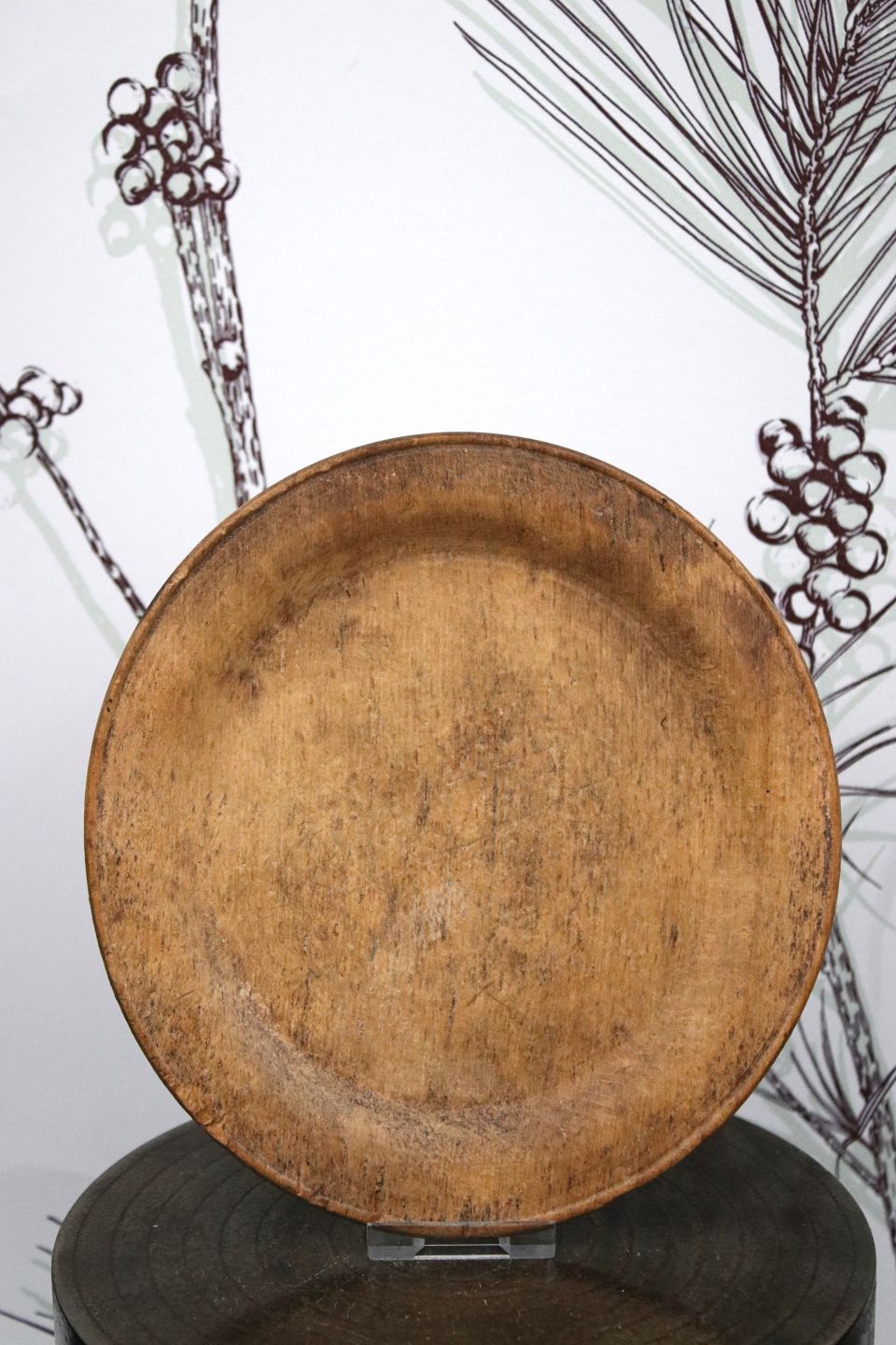Swedish 19th century wooden plate with fine patina. Dia.: 17.5cm.