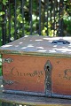 Swedish 19th century wooden box with original red terracotta color with a really nice patina, wrought iron fittings and with key, dated 1828. Dimensions: H: 21.5cm. W: 50cm. D: 41cm.