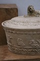 Antique Swedish oval empire faience tureen from 1810-40 with fine decorations and a lion lying on the lid...