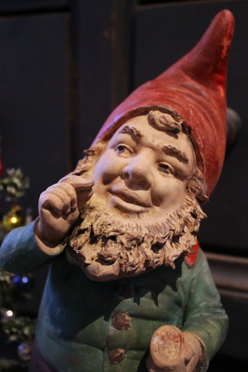 Antique terracotta gnome with old paint and a fine patina. Height: 36.5cm. Item number: Antik terrakotta nisse nr.1