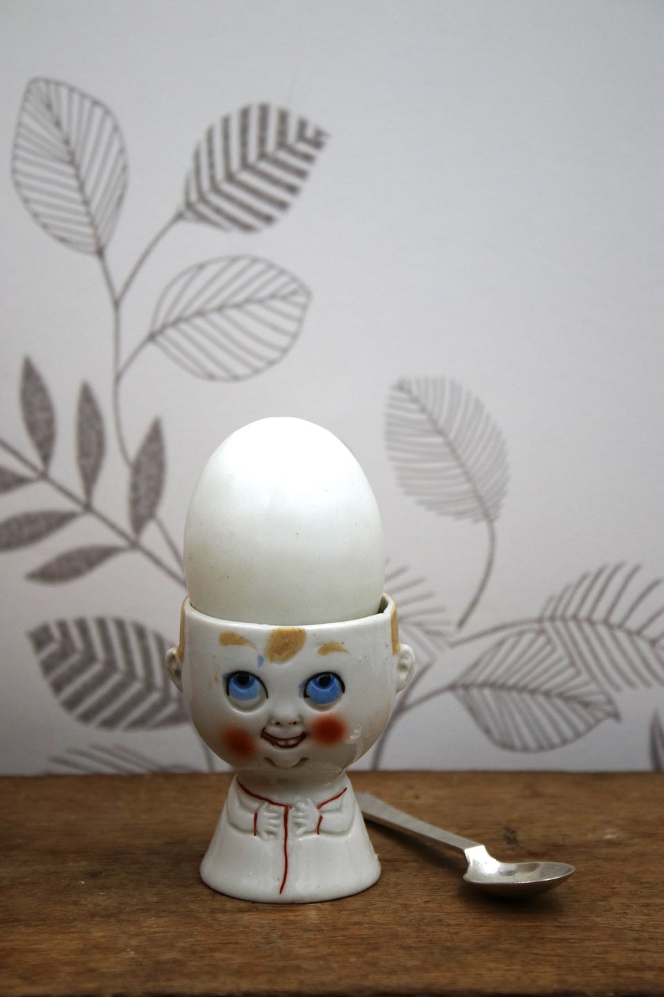 Old egg cup from the 1930s in porcelain with a painted funny face. Height: 6cm. Item number: Æggebægre nr.8