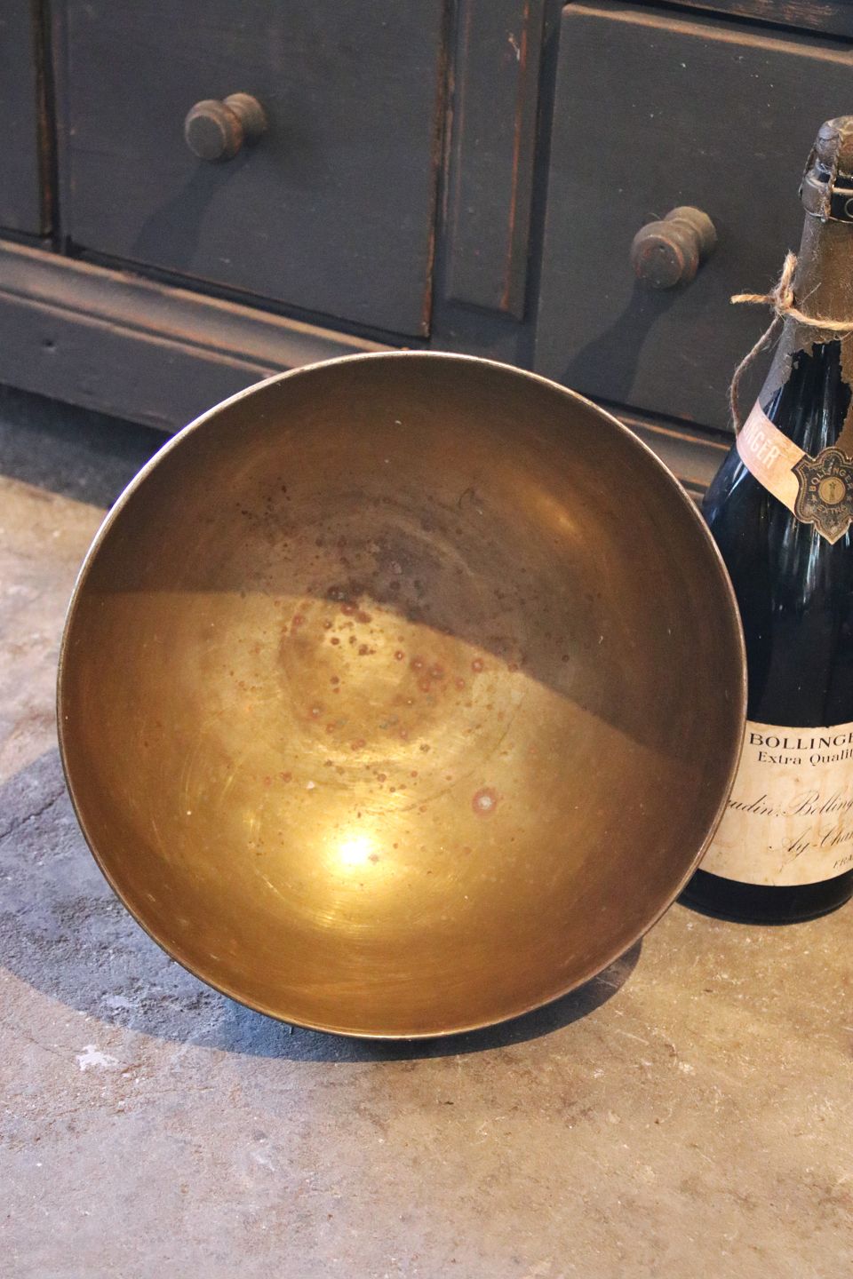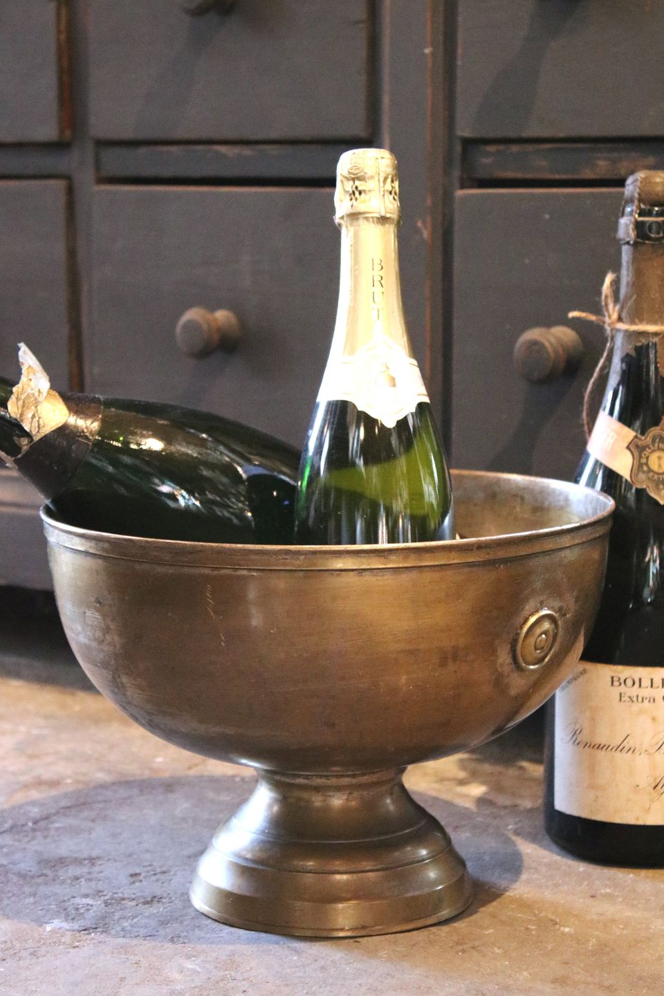 Gammel fransk champagnekøler i messing , med rest af gammel forsølvning og med en rigtig fin gammel patina.
