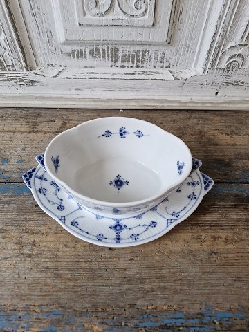 Royal Copenhagen Musselmalet riflet sauceskål uden låg No. 207, 2. sortering Højde 8 cm. Længde 24 cm. Produceret mellem 1898-1923