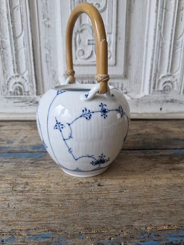 Royal Copenhagen Musselmalet riflet tekande med bambus hank uden låg No. 140, 1. sortering Højde 11,5 cm. Længde 18 cm.