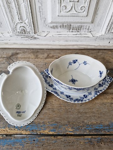 Royal Copenhagen Musselmalet helblonde sauceskål med låg No. 1106, 1. sortering Mål 16 x 24 cm. Højde 13 cm.