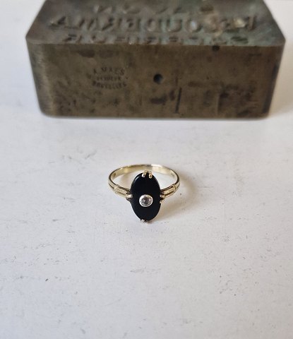 Smuk gammel ring i 14 kt. guld med oval onyx prydet med gammel slebet diamant