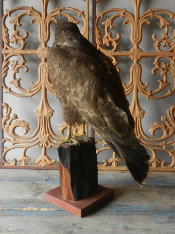 Meget flot udstoppet musvåge, monteret på et stykke mose eg.