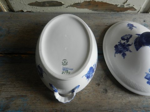 Royal Copenhagen, Flettet Blå Blomst, Ragout fad med låg/terrin No. 8174. 1. Sort. Mål 18x28cm. Højde 15cm.