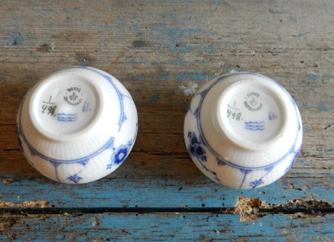 Royal Copenhagen, Musselmalet riflet kuvertvaser No. 498, 1.sort. Højde5,5cm. Produceret mellem 1898-1923