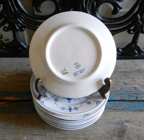 Royal Copenhagen Musselmalet riflet, hel flad sidetallerken No. 300, 1.sort. Diameter 14,5cm. Stock: 1