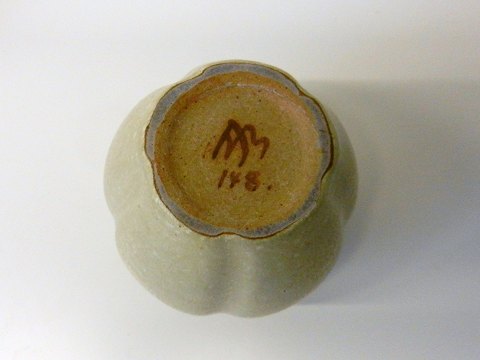 Arne Bang sandfarvet vase, signeret AB 148, Højde 13cm.
