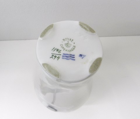 Royal Copenhagen, smuk Art Nouveau vase i sart rosa farve dekoreret med valmue, vasen står på "fødder".