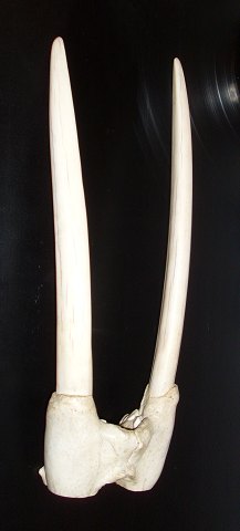 Flotte hvalrostænder med kæbestykke, tænderne er meget fine og lige.
