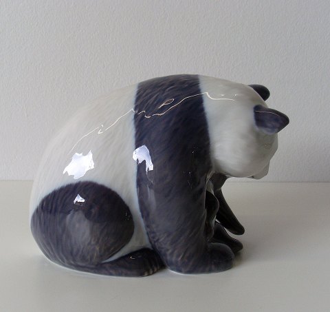 Royal Copenhagen panda med unge No. 666, 1. sort. Modelleret af A.Therkelsen Højde 13cm. Længde 18cm.